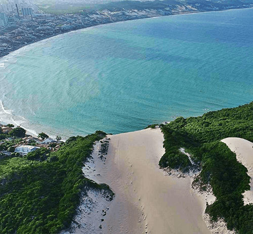 O São Luís, na extremidade sul da Praia de Ponta Negra, é o cartão-postal mais famoso de Natal, Rio Grande do Norte. Sua imponente duna de areia branca ladeada por vegetação verde cria um contraste natural que parece ter sido feito sob medida para uma foto perfeita.