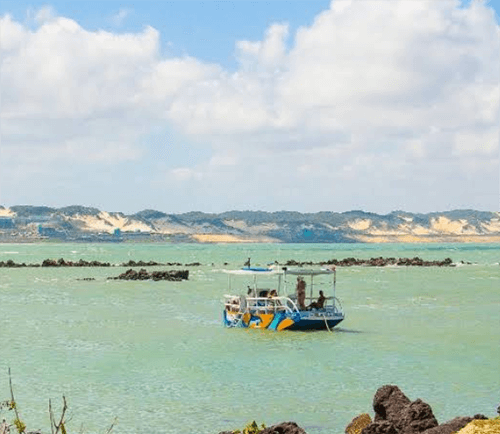 O passeio de Jagalancha é uma das experiências mais divertidas e descontraídas para quem visita o São Luís. Essa embarcação, que combina o visual de uma jangada tradicional com a estrutura de uma lancha, percorre a orla de Ponta Negra ao som de música animada, criando um clima de festa em alto-mar.