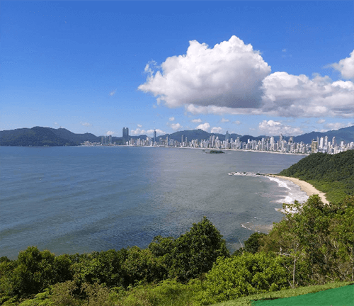 Chegar ao topo do São Luís Itajaí é ser recebido por um dos cenários mais espetaculares de Santa Catarina. Do mirante natural, a vista se abre em um panorama de 360°, onde à direita se destacam as praias urbanas de Balneário Camboriú, com sua orla vibrante e arranha-céus à beira-mar, e à esquerda a cidade portuária de Itajaí, com seu movimento cultural e náutico.